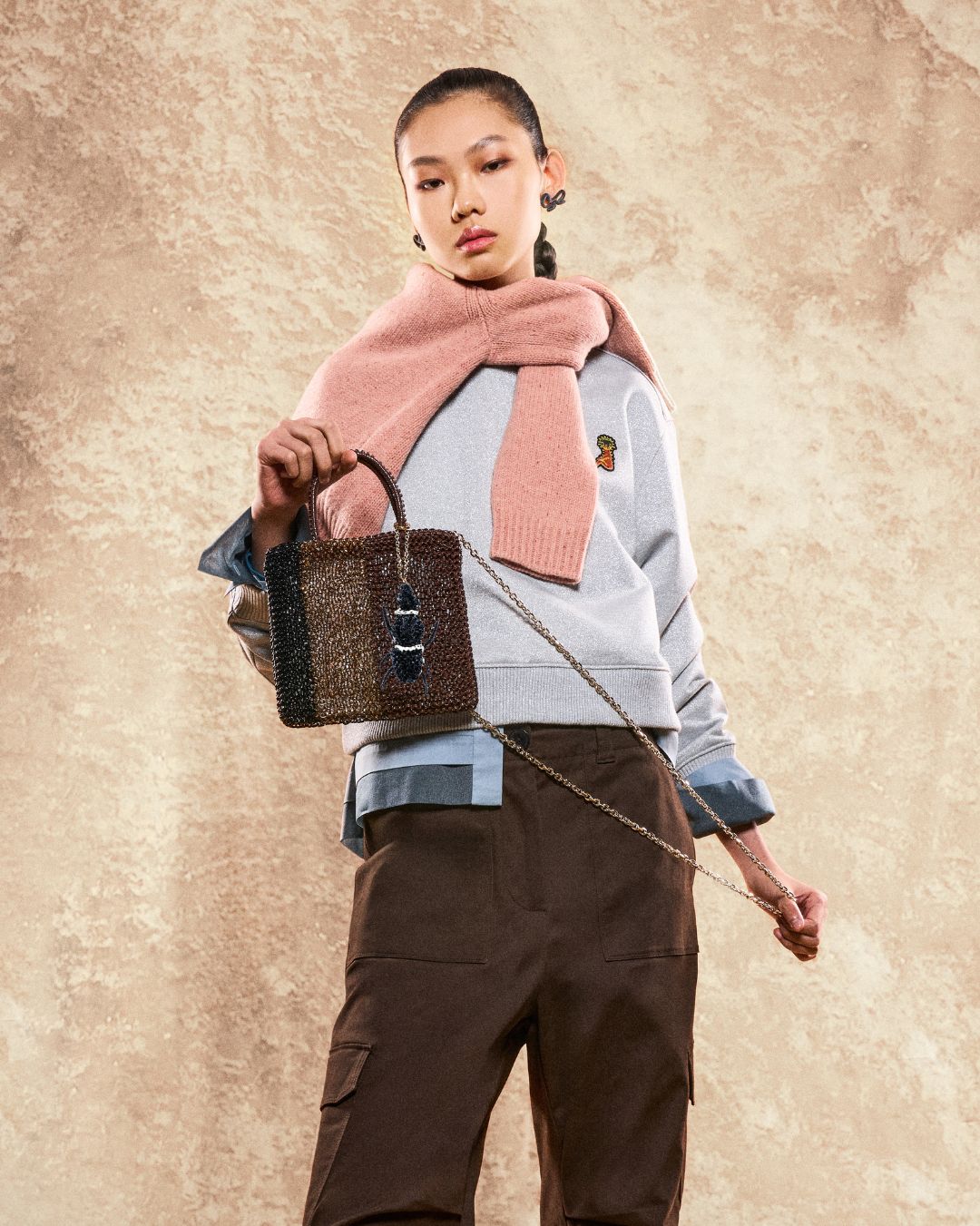 ANTEPRIMA WIREBAG uses only the most exquisite materials, including an exclusive wire that is crafted in a wide range of colors, to hand-knit lightweight creations that gleam with just a hint of light.